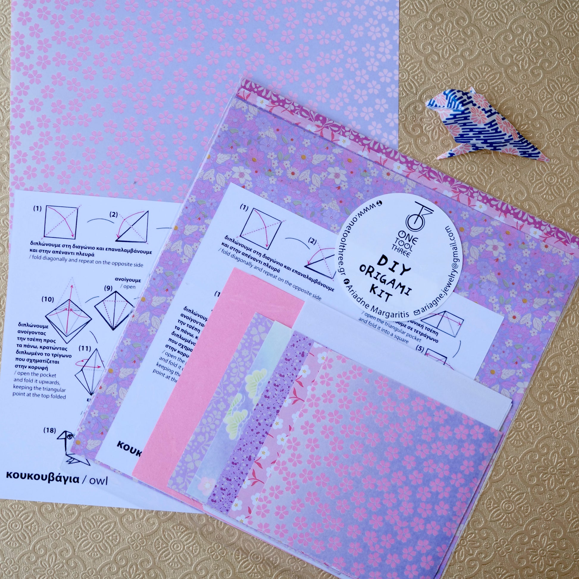 DIY origami KIT. 20 colorful, square, origami papers and instructions 1 for the owl design + 1 bonus included.
