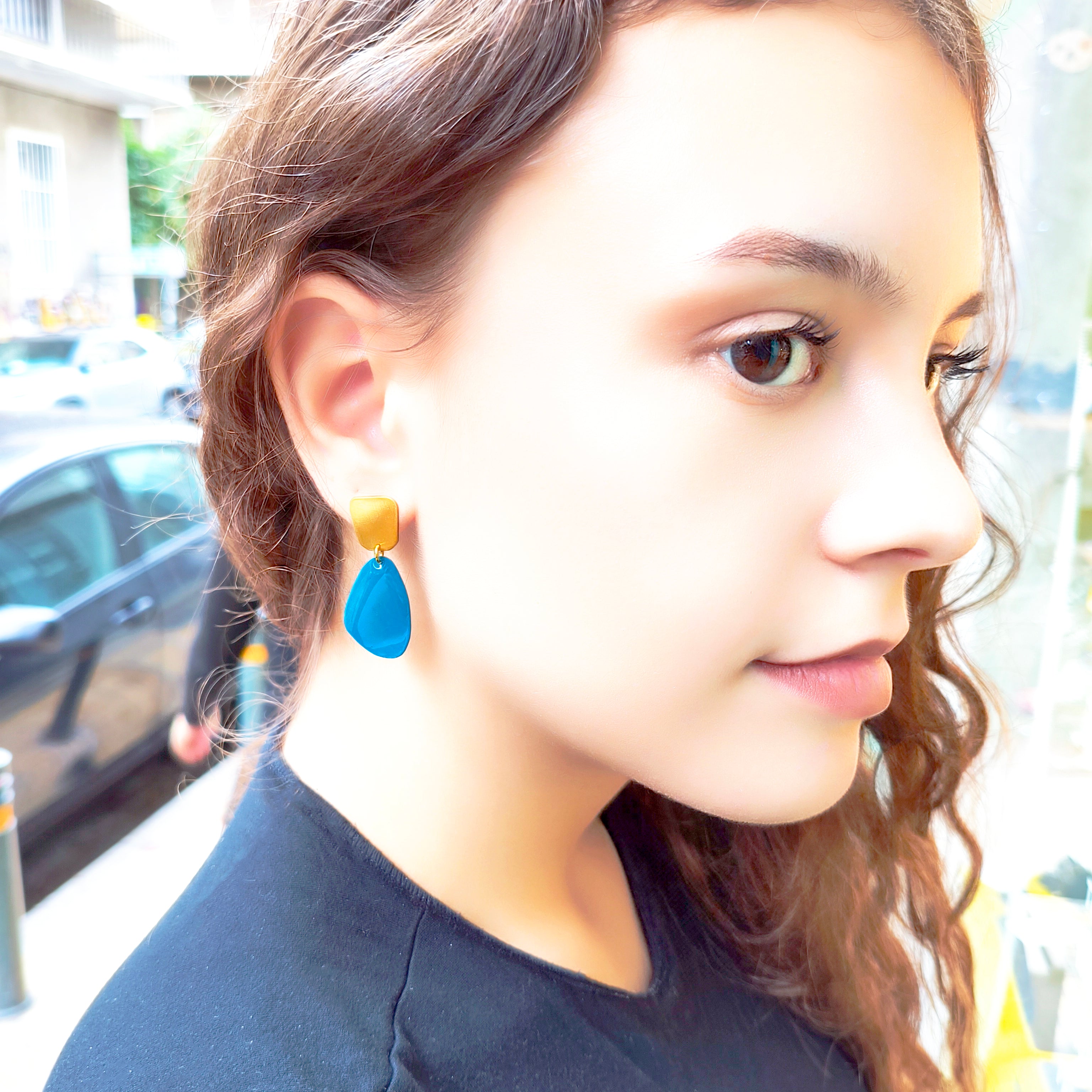 Ασημένιο σκουλαρίκι επιχρυσωμένο με μπλε σμάλτο