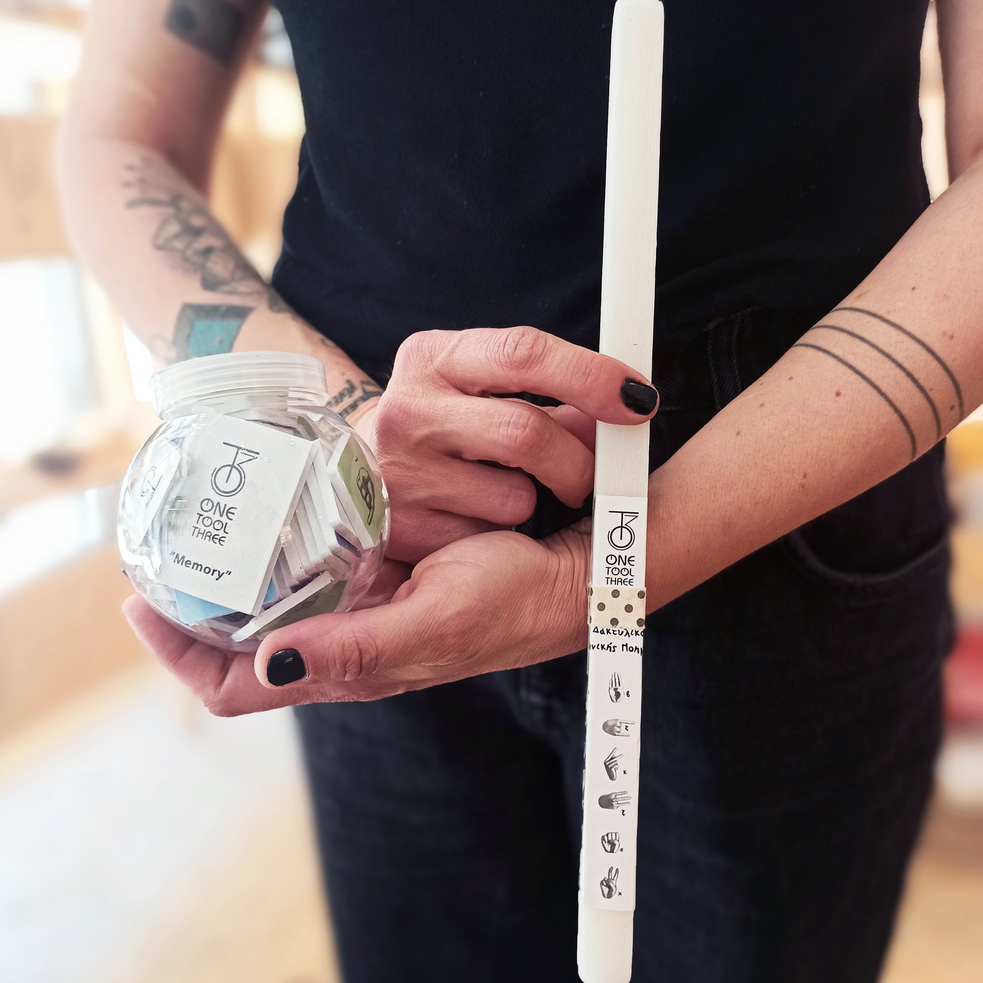 Candle with memory game, with the Greek Sign Alphabet.