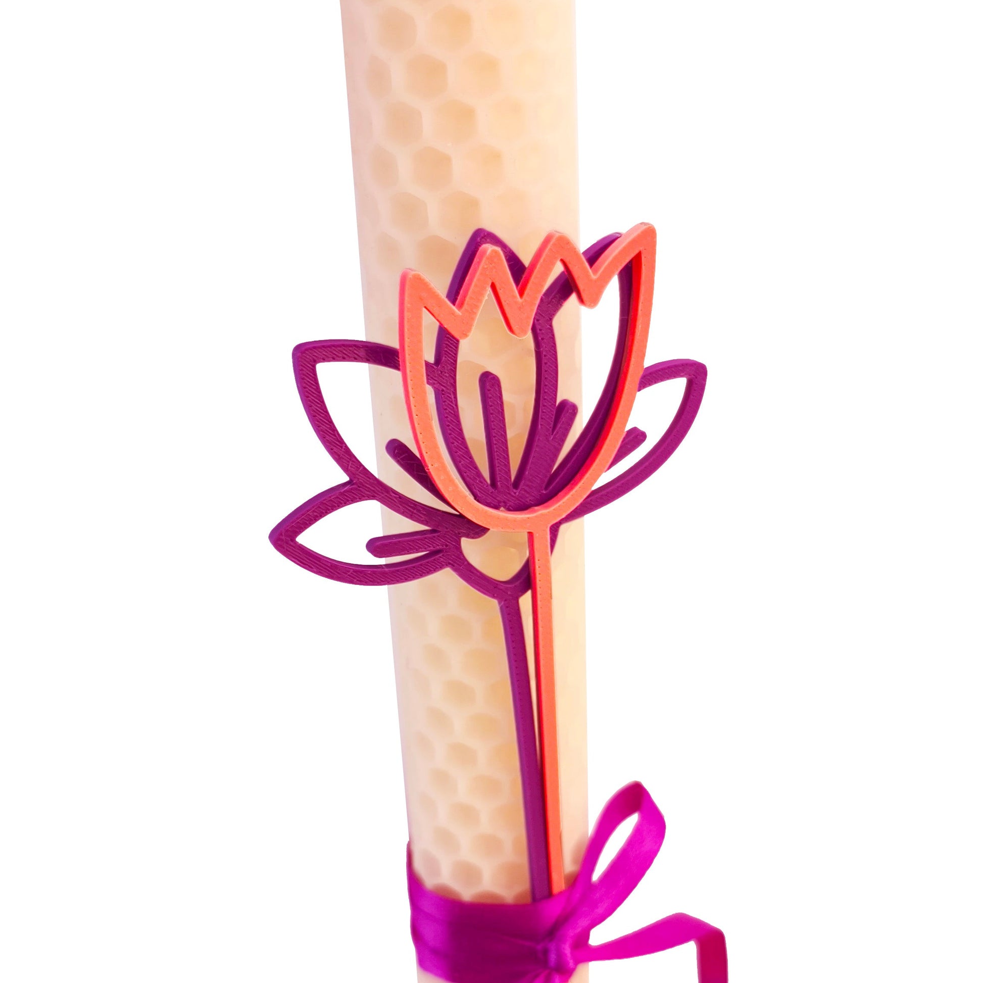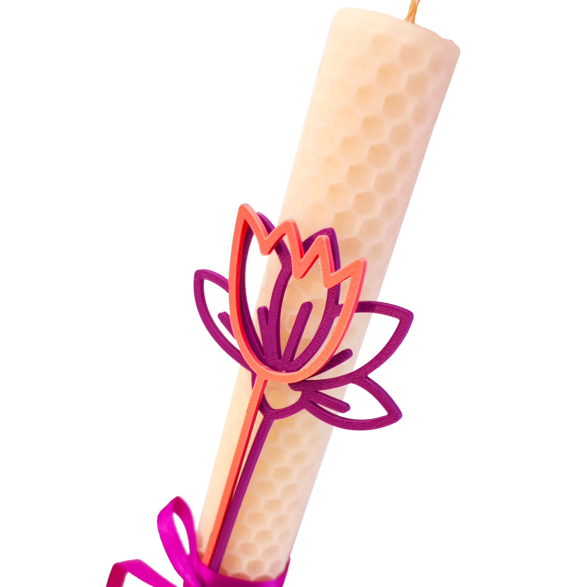 Λαμπάδα με λουλούδια από 3διάστατη εκτύπωση σε λευκό κερί μέλισσας.