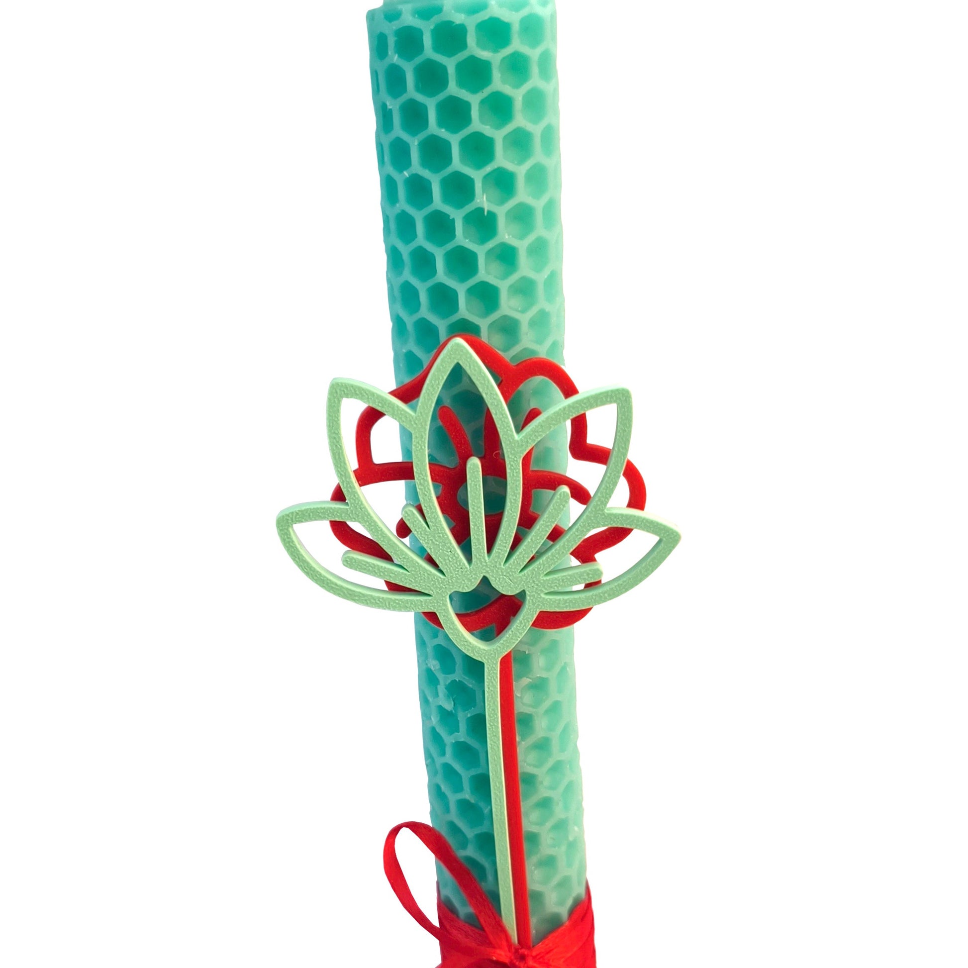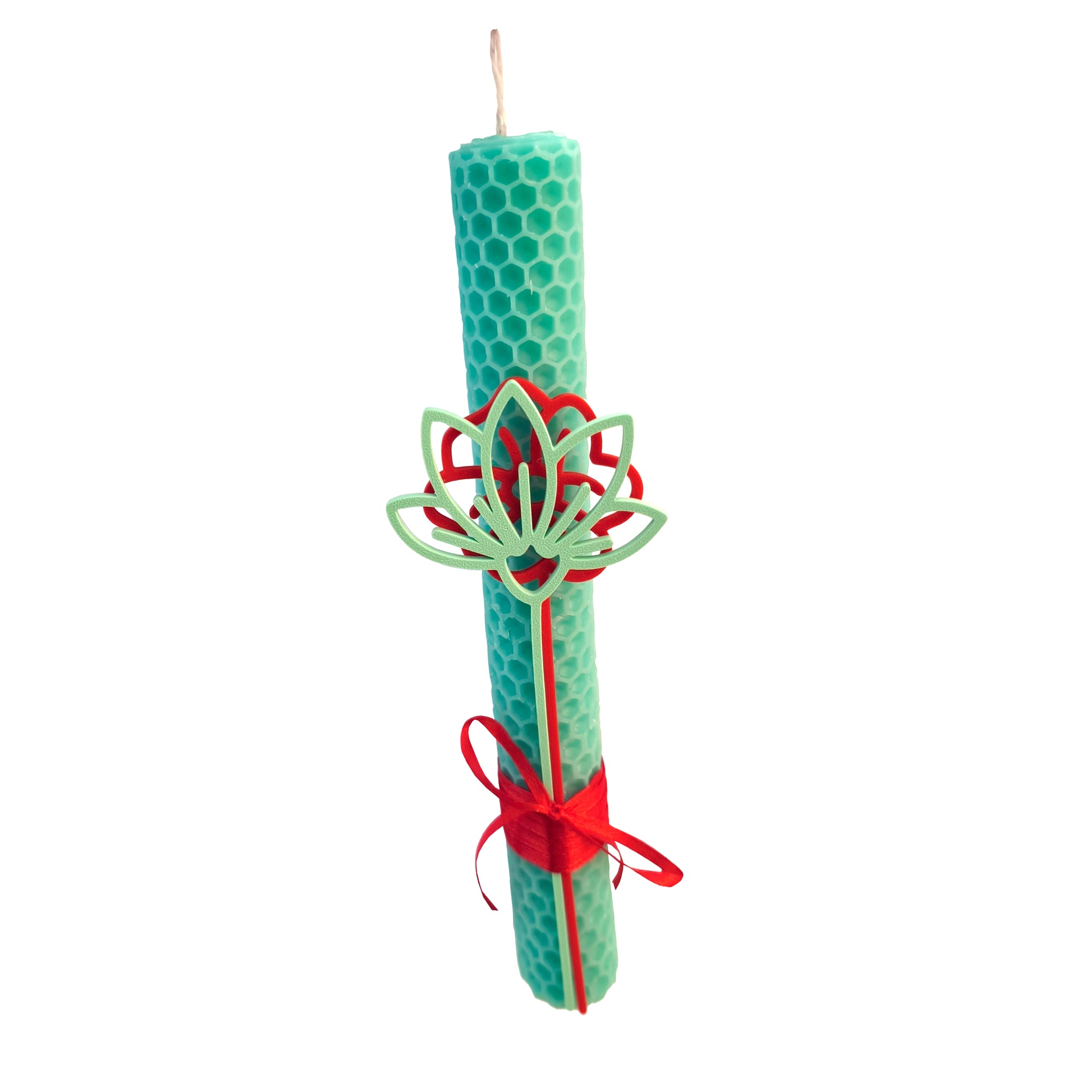 Λαμπάδα με λουλούδια από 3διάστατη εκτύπωση σε τυρκουάζ κερί μέλισσας.