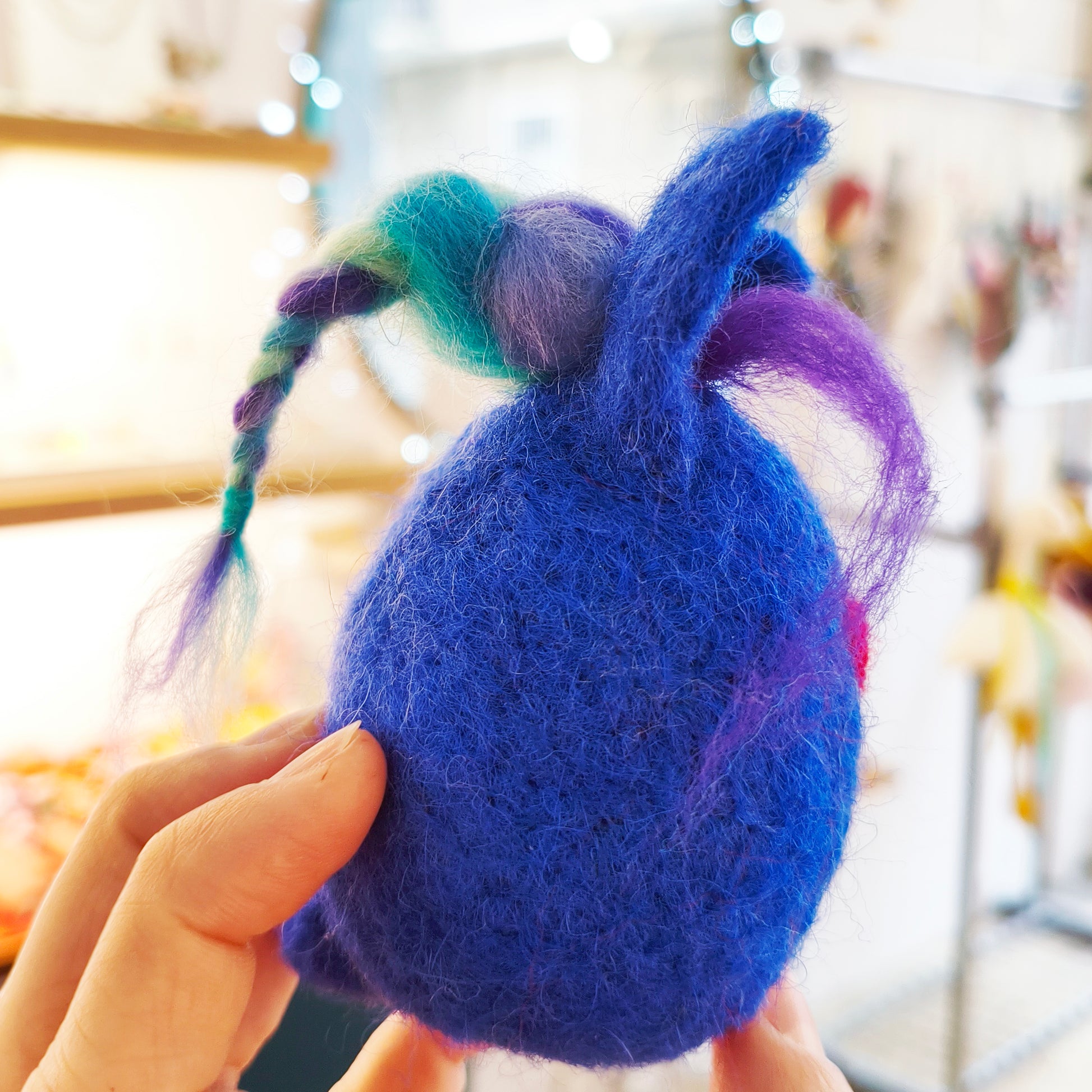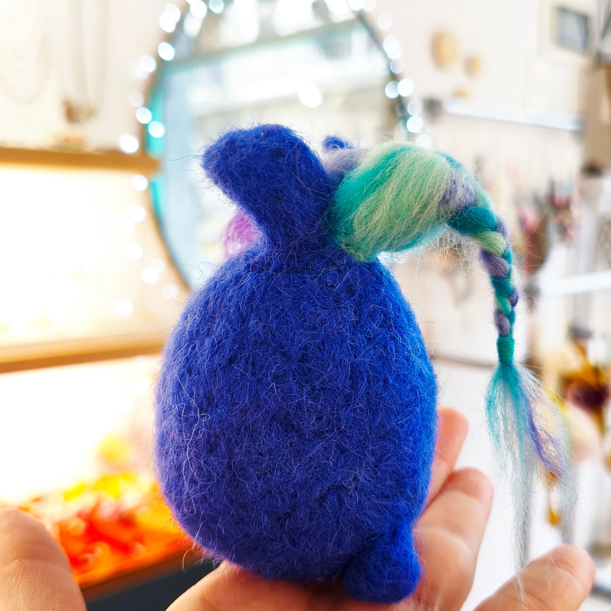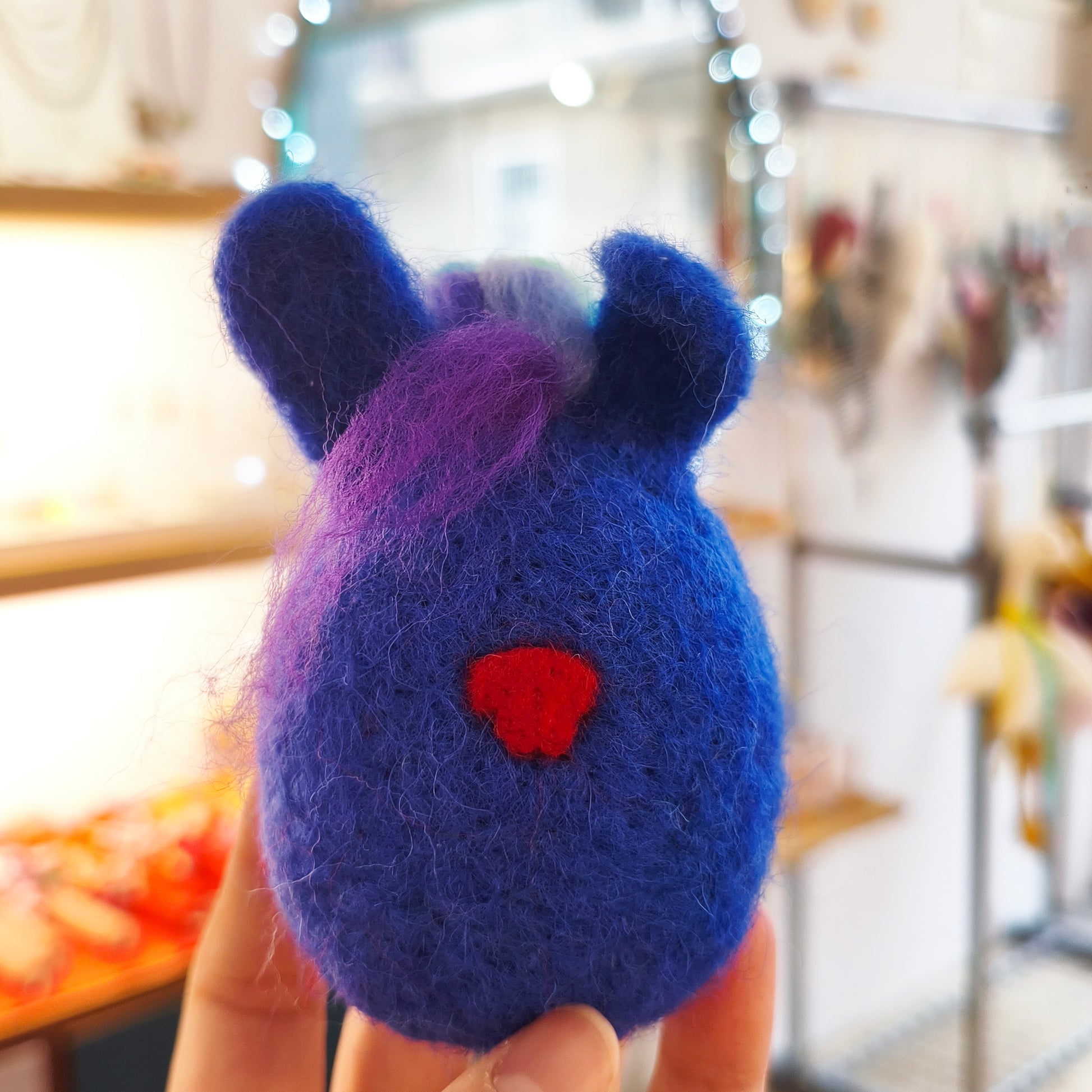 Διακοσμητική φιγούρα κουνελάκι από μπλε μαλλί merinos.