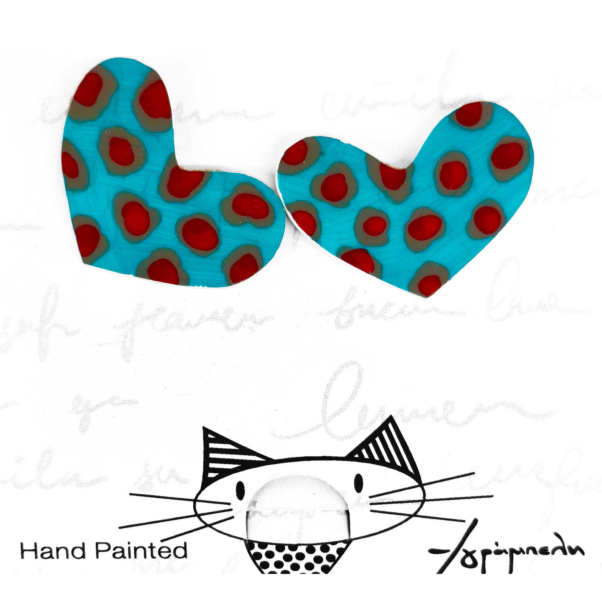 Stud earrings, hand painted, shrink plastic hearts.