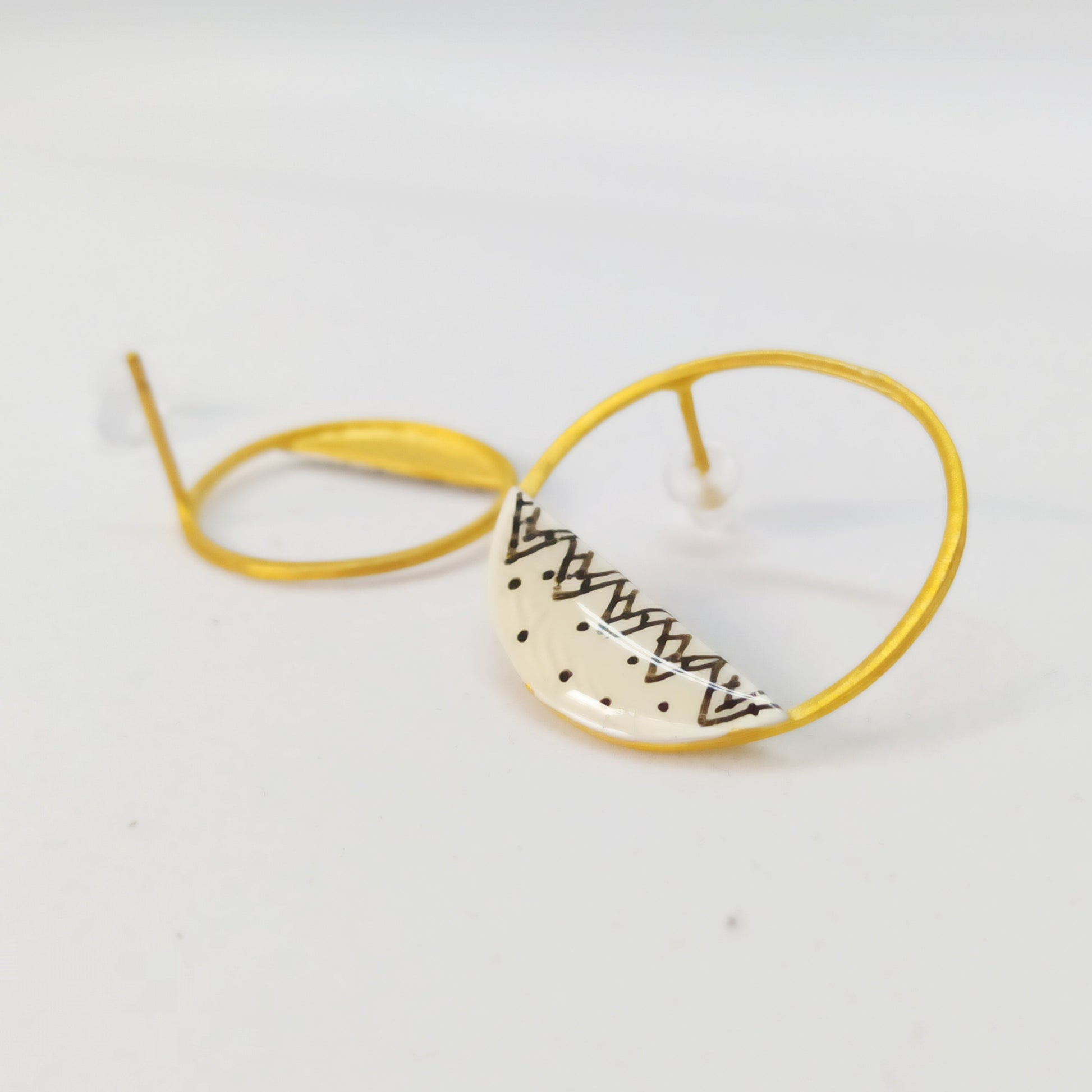 Uneven silver 925° stud earrings, gold-plated and hand-painted with white enamel.