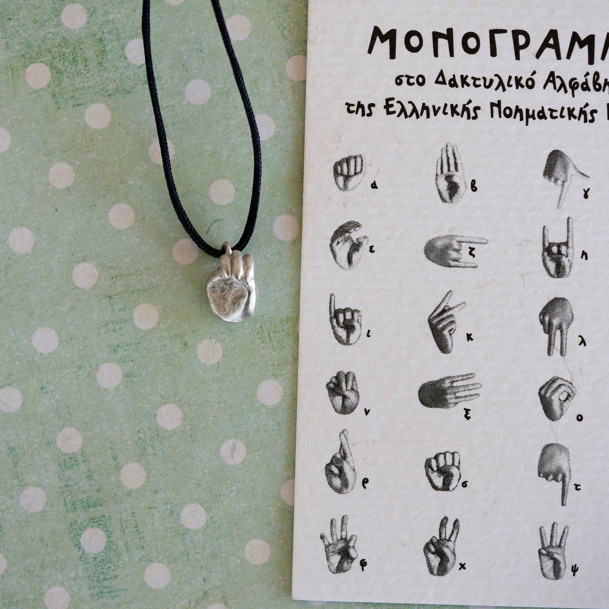 Ανακαλύψτε το μοναδικό μας μενταγιόν από μασίφ Ασήμι 925°, σχεδιασμένο με αγάπη και έμπνευση από την Ελληνική Νοηματική Γλώσσα.