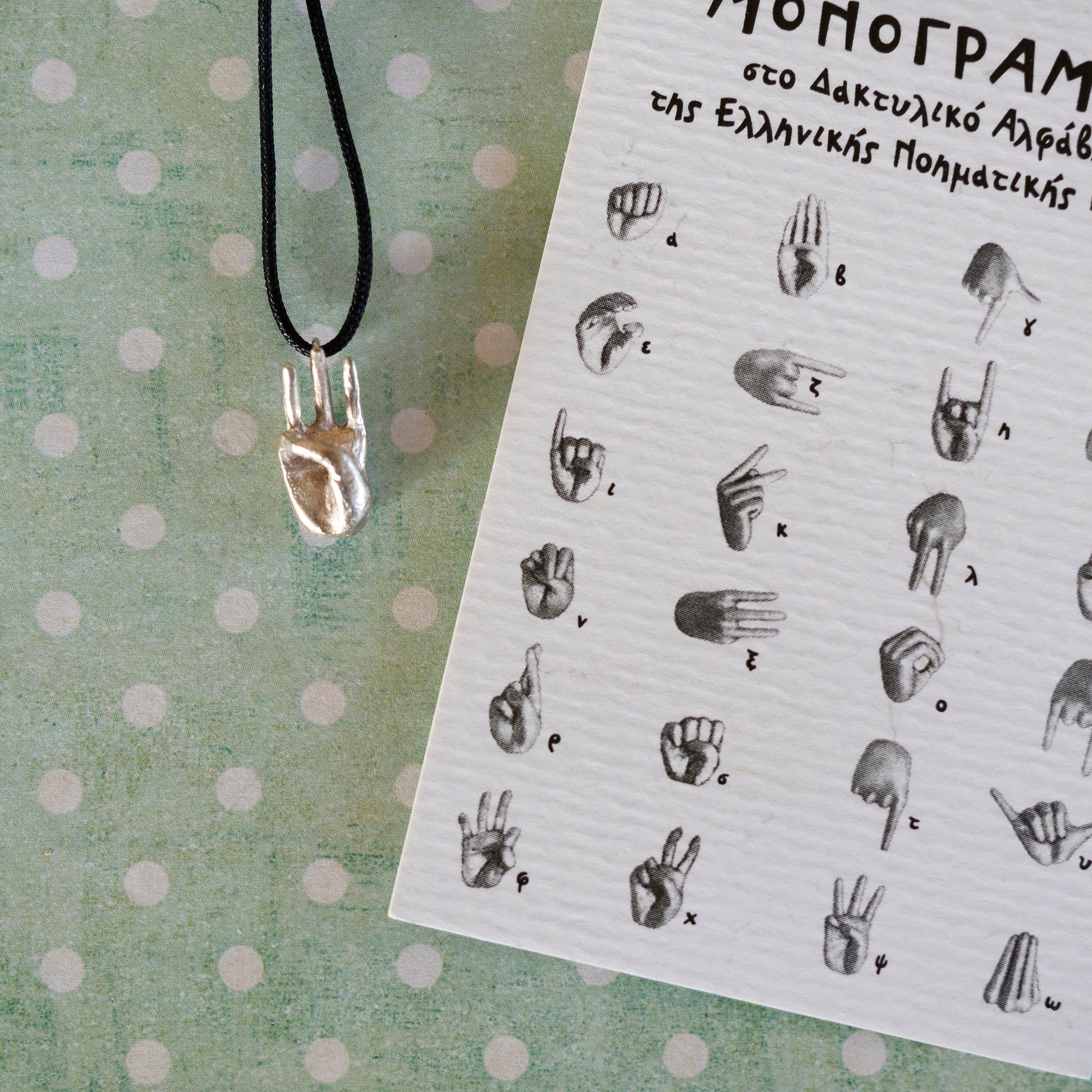 Ασημένιο κρεμαστό 'Μονόγραμμα' στην Ελληνική Νοηματική Αλφαβήτα